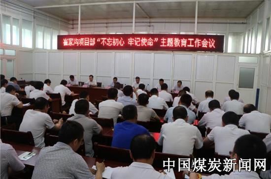 6月26日上午9时,铜川矿务局崔家沟项目部在培训室召开“不忘初心 牢记使命”主题教育会议,该项目部领导班子、各副总、各单位负责人、党支部书记、支部专职副书记及党员代表共70余人参加。