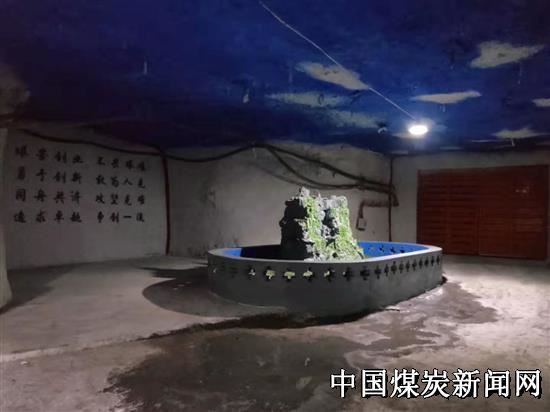 如何才能实现变“废”为“宝”,通风队广大干部职工集思广益,跳出装围栏、设警戒的固有思维模式,因地制宜,别出心裁,利用井下通风设施施工过程中产生的建筑垃圾,及源源不断涌出的裂隙水,在煤仓原址上打造出一处假山喷泉景观。煤壁上“艰苦创业,不畏艰难;勇于创新,敢为人先;同舟共济,攻坚克难;追求卓越,争创一流”的文字更是将企业文化凸显的淋漓尽致,引得不少井下工人驻足围观,赞美声连连。