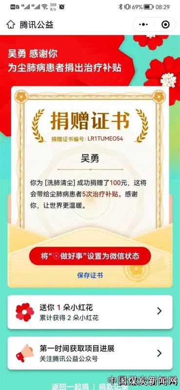 为提高捐赠活动知晓率,活动开始前,该矿工会广泛宣传,积极动员,让广大干部职工了解尘肺病的严重危害以及募捐的目的和意义。同时充分利用“两微一网”等新媒体平台转发捐赠倡议书、捐赠二维码,方便干部职工捐赠。从9月7日捐赠活动开启后,该矿广大干部职工纷纷通过扫描二维码的方式进行公益募捐,以实际行动积极践行社会责任,贡献微薄力量,在矿区形成了“人人参与公益、个个传递爱心”的良好风尚。